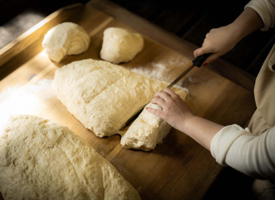 Zwiebel oder Sahne – je nachdem, wer gerade angerührt hat. Alles Handarbeit, alles echt. Kleine Fehler sind kein Thema. „Wenn’s net perfekt isch – macht nix“, sagt Elfriede. „Solang’s schmeckt.“ Dann geht’s ans Brot. Jede darf einen eigenen Laib formen, mit verschiedenen Mustern, Initialen oder einfach nach Bauchgefühl.