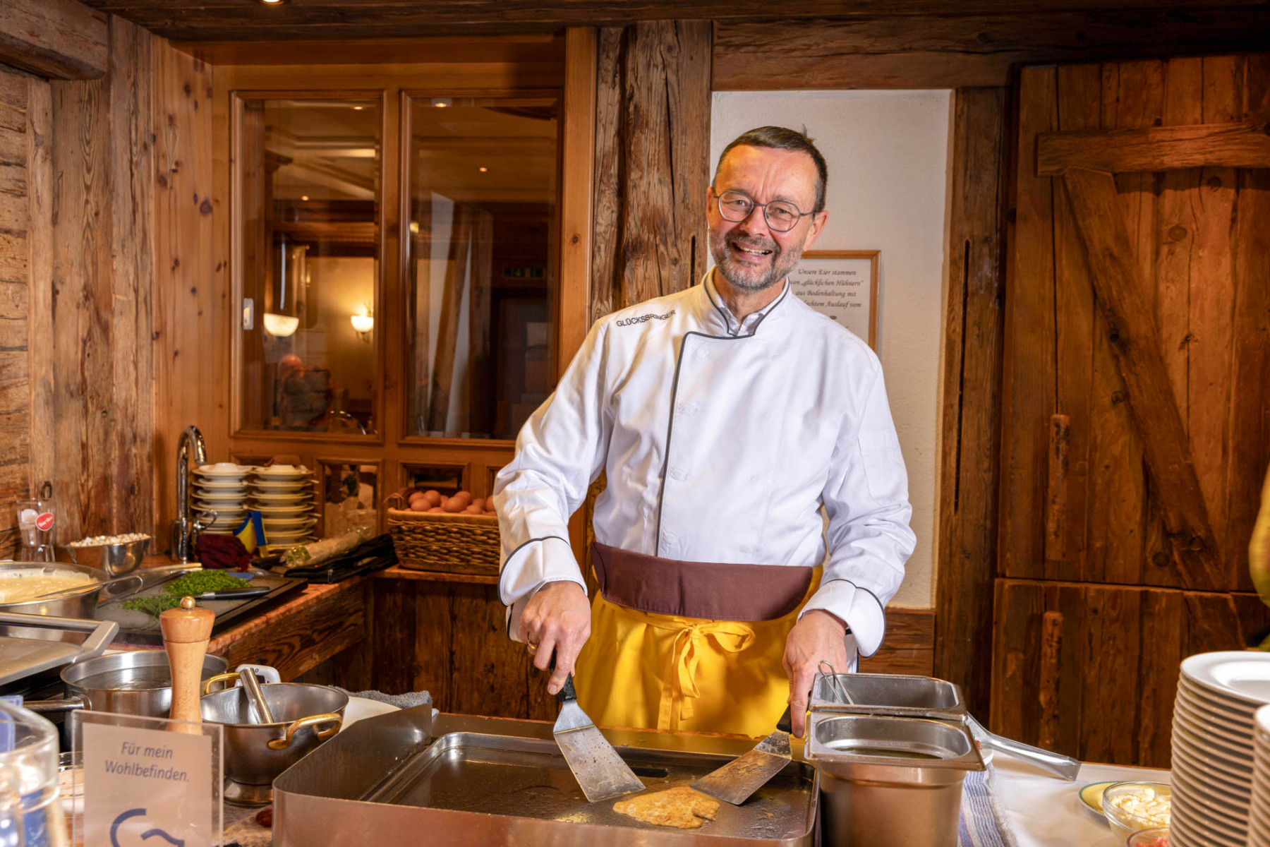 Matthias wollte für seinen neuen Job die Gastronomie genau kennenlernen. Deshalb hat er in der Tanne ein Praktikum gemacht, Frühstücksomelette für die Gäste gebacken und in der Küche geholfen. Alles, um besser zu verstehen, was seine Gemeinde umtreibt. Dreimal im Jahr bietet er eigene Gastro-Gottesdienste an: nach Ostern, zum Abschluss der Urlaubssaison und nach Weihnachten. Damit auch Menschen in der Kirche zu Ruhe kommen können, die sonntags und an Feiertagen Vollgas für ihre Gäste geben.