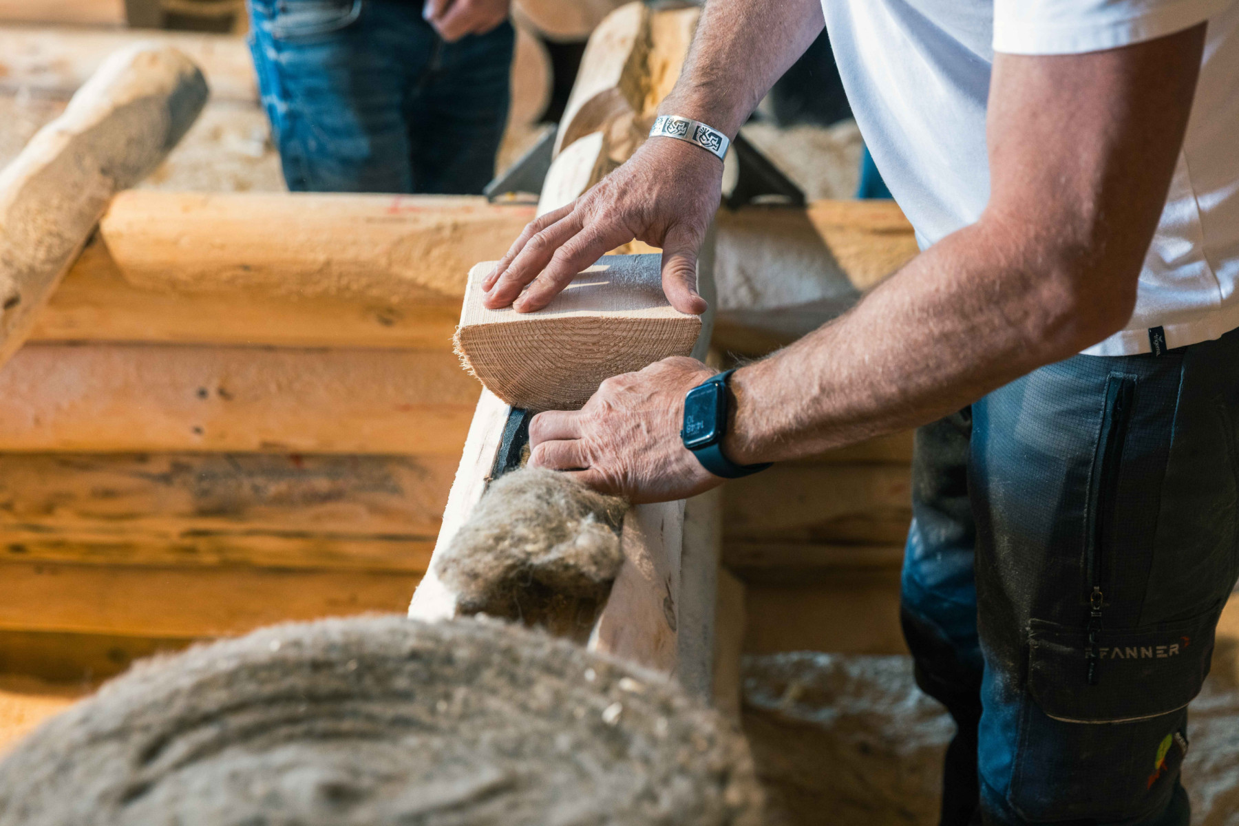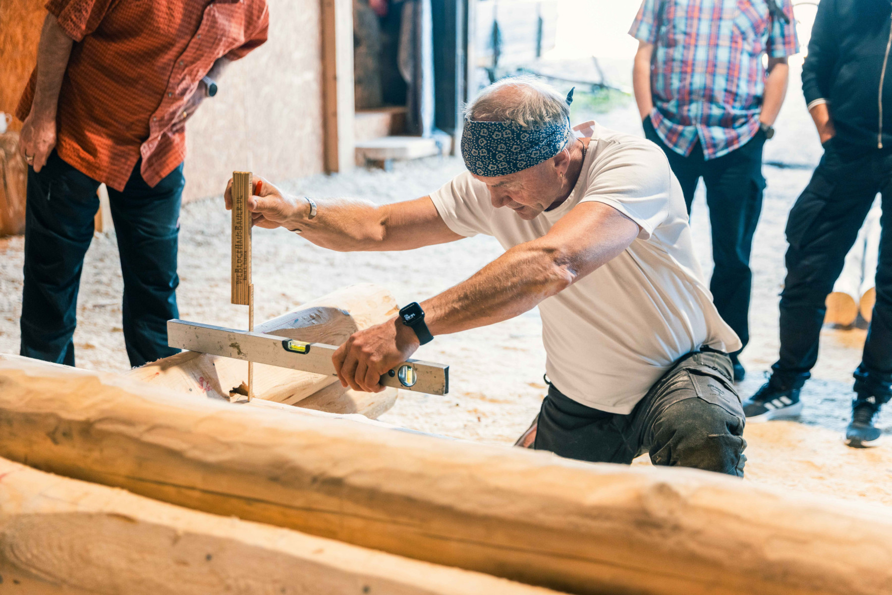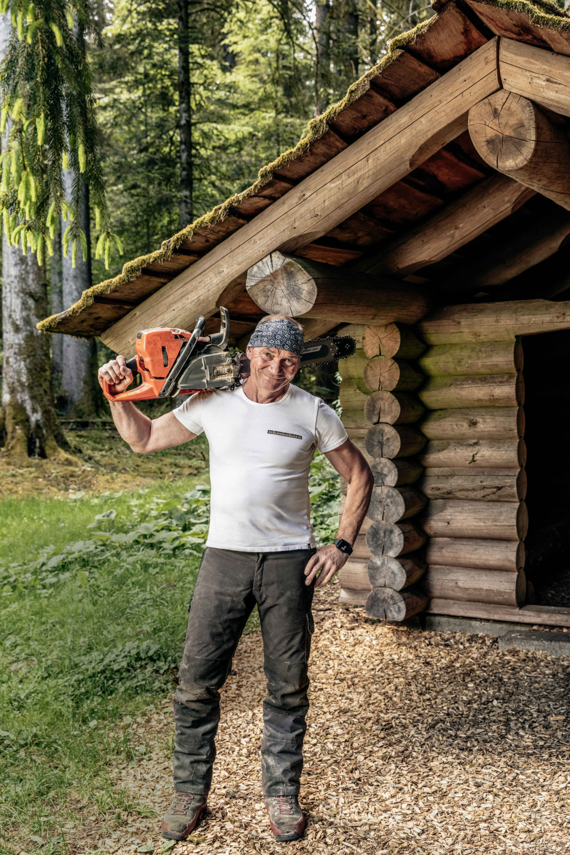 Wer den Kurs bei Ralph bucht, lernt am Rande des Nationalparks Schwarzwald die Grundlagen der Rundstammverbauung, übt, mit Motorsägen, Schleifscheiben, Fräsköpfen und Naturdämmstoffen umzugehen, und geht am Ende mit der Planung der eigenen Hütte plus einer Bauherren-Notfallnummer nach Hause. Unter dieser ist Ralph Pfersich zu erreichen, sollte ein Problem beim Bau auftreten. Kommt das oft vor? Der Blockhausbauer lacht. „Von mehr als 6000 Teilnehmern, die in meinen Kursen waren, hatte keiner einen Notfall. Dafür die eine oder andere eine Frage. Dann heißt es anrufen, und schon kann man weiterbauen“, sagt er.